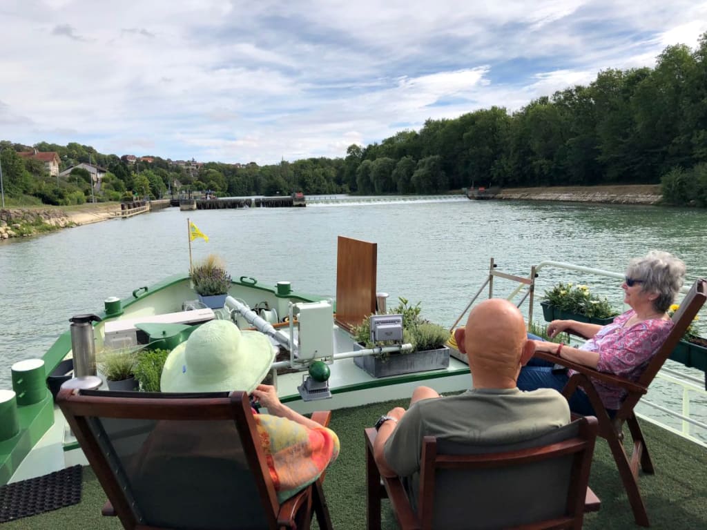 Als gast op het motorschip Johanna voel je je als God in Frankrijk. Op het zonnedek geniet je met een heerlijk glaasje wijn van het voorbij glijdende landschap. Plots stijgt een reiger op aan de oever. Hoog in de lucht cirkelt een roofvogel in het rond. Wandelaars op het jaagpad blijven even staan en wensen je “bonne route”.